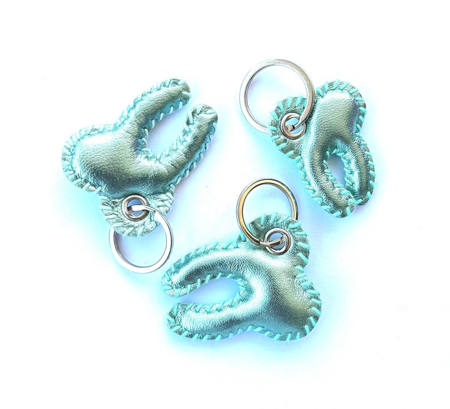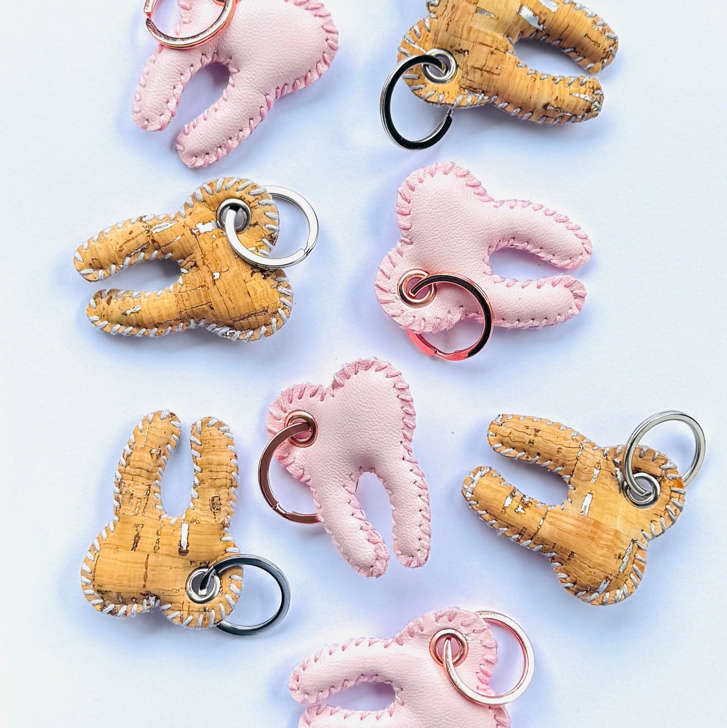 Schlüsselanhänger aus Echtleder , beschichtetem Canvas, Kork oder PU-Leder in Zahnform